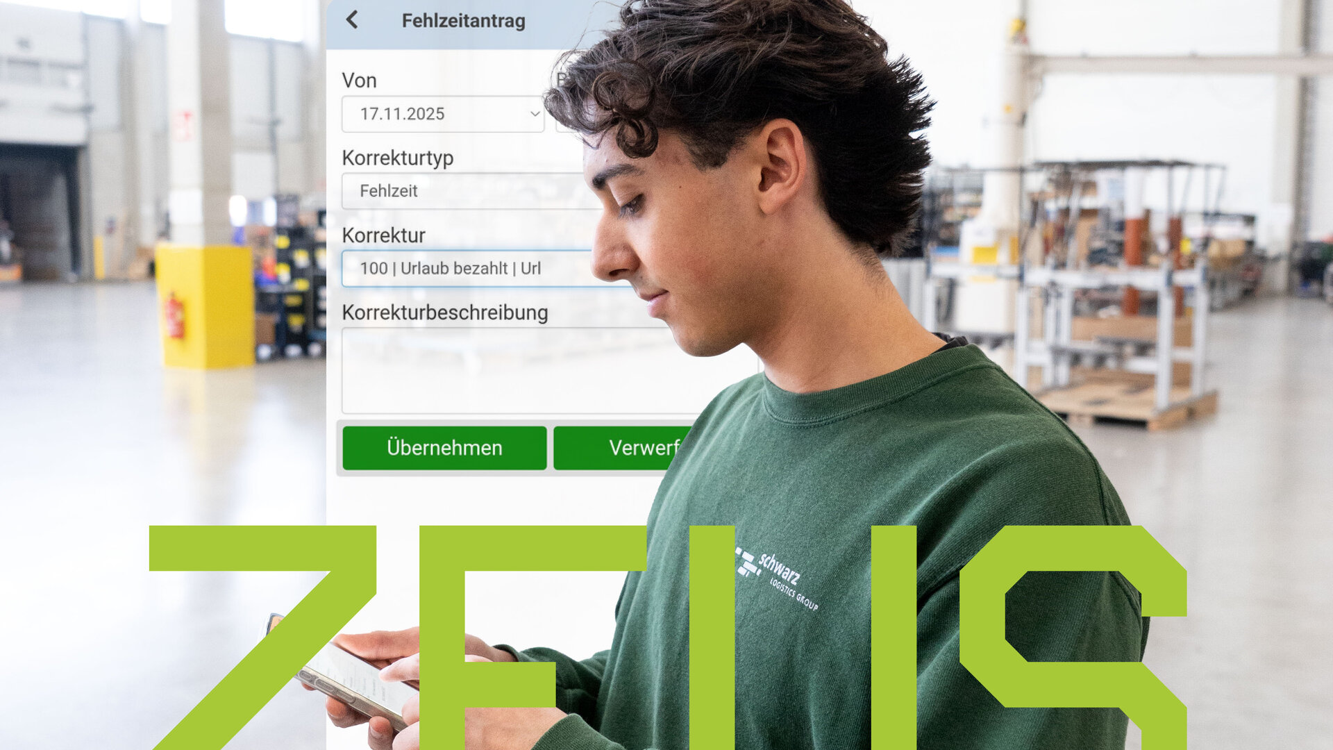„Wir haben die Zeiterfassungs-App „ZEUS mobile“ von Isgus mit Unterstützung des Anbieters für die Bedürfnisse und Bedingungen von Schwarz umgearbeitet. Jeder Mitarbeitende soll sie demnächst auf seinem Smartphone haben“, sagt Patrick Feldengut, bei Schwarz einer der Verantwortlichen für die neue App. Wir, das sind neben Feldengut noch Jochen Ruoff, die Personalabteilung, sowie Joachim Gunderlach (IT-Support) und ein Support von Isgus. Ob Urlaubsanträge, Stand der Urlaubstage, Stundenerfassung, Ein- und Ausstempeln oder Fehlzeitenerfassung: Das alles wird ganz individuell für jeden Mitarbeitenden über die App möglich sein. Bei Absendung eines Urlaubsantrags über die Anwendung wird eine Anfrage an die jeweiligen Vorgesetzten zur Genehmigung gestellt. Diese können die gestellten Anträge ihres Teams sowohl in einer Browser-Anwendung als auch in einer mobilen App über ihr Smartphone einsehen und genehmigen. Die Mitarbeitenden wiederum können ganz einfach ihren Urlaubsvorrat oder die abgeleisteten Arbeitsstunden abfragen.